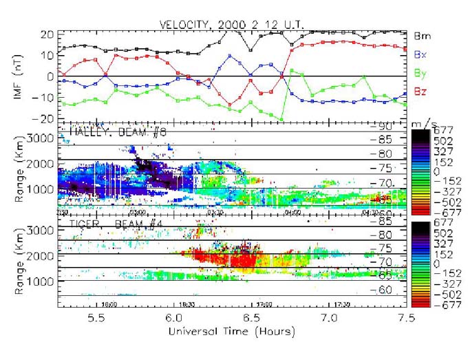 TITLE:Simultaneous Measurements of Convection Changes in the High-Latitude Day and Nightside Ionosphere with the Halley and TIGER HF Backscatter Radars - Early Results